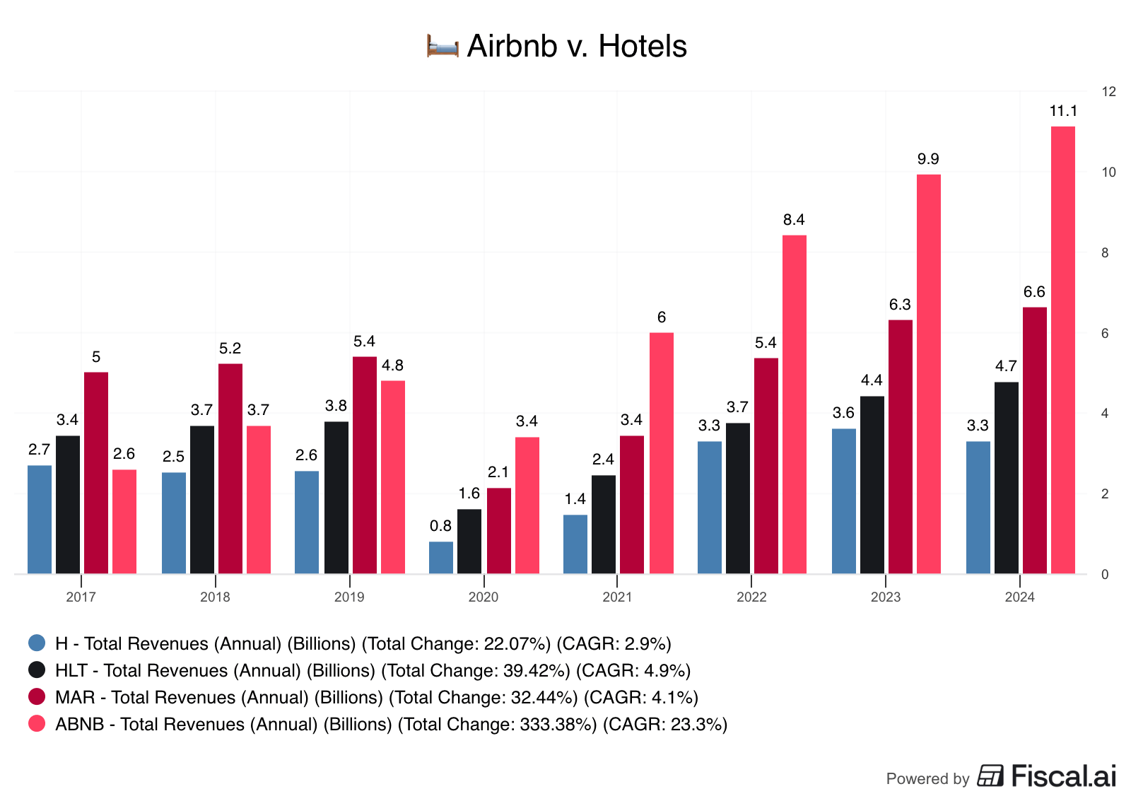Today, Airbnb generates nearly as much revenue as the 3 largest US hotel chains (Marriott, Hilton, & Hyatt) combined!