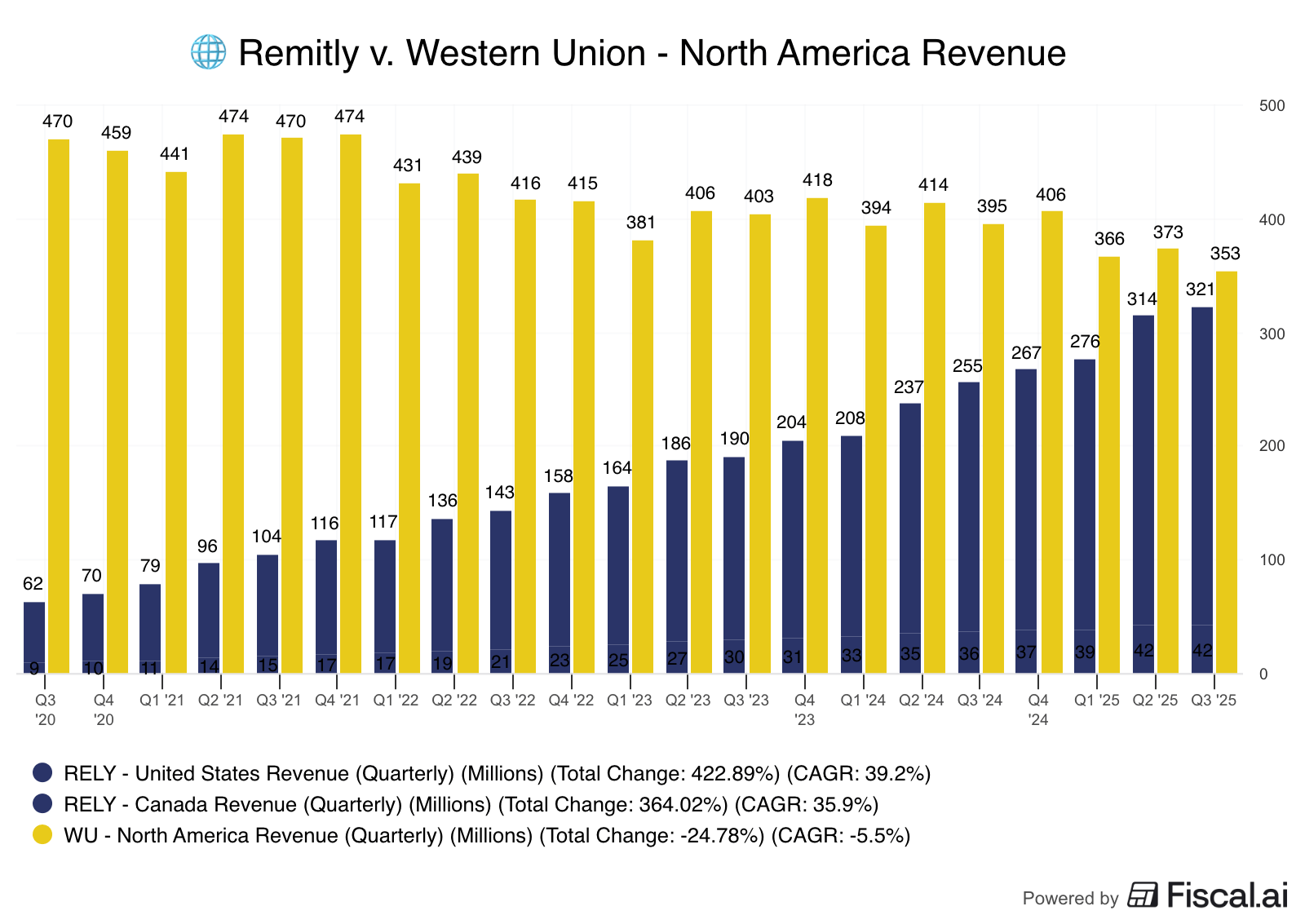 Remitly, on the other hand, started as a mobile app and allows consumers to easily send money across borders faster and at a lower cost. This ease of use has helped Remitly grow from 948,000 active users in Q4 of 2019 to 8.9 million today!
