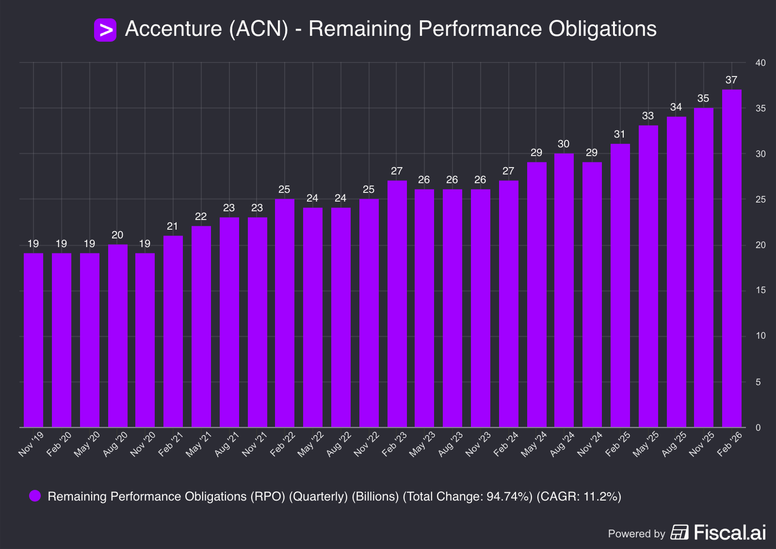Accenture’s IT-specific focus puts them on slightly better footing than competitors amidst the AI threat, as their clients are actually turning to them to implement AI solutions.